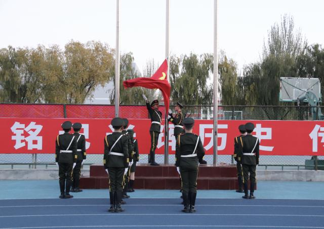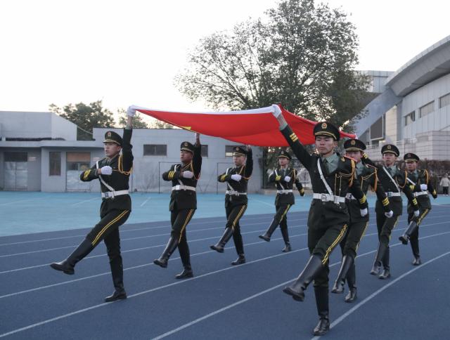 6时50分,升旗仪式正式开始,国旗班的旗手们迈着整齐的步伐,护送国旗入场。“升国旗,奏国歌,全体师生行注目礼。”伴随着庄严的国歌,五星红旗冉冉升起,全体师生怀着自豪和崇敬的心情,凝视着飘扬的五星红旗。